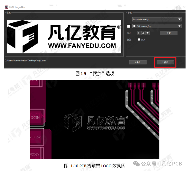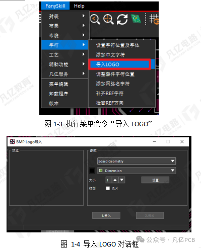 在完成PCB设计之后,常常会遇到需要在PCB板上展示公司标志或者导入设计中需要的logo图片的情况。为了满足这一需求,FanySkill特别提供了“导入LOGO”这一便捷功能。通过这个功能,用户可以轻松地将logo图片放置到PCB设计中,从而快速实现将公司标识或其他设计元素整合到电路板上的效果。