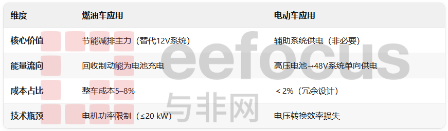 48V系统电动车VS燃油车,来源:与非研究院整理