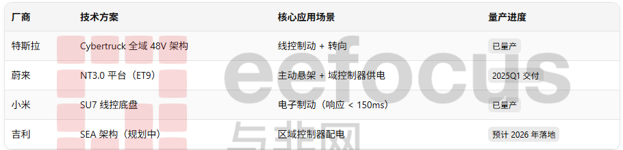 GaN技术凭借高频、高效、小型化优势,正成为48V升级的重要方向。代表性产品包括: