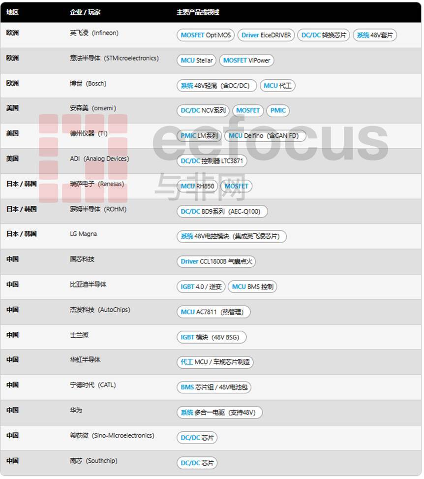 部分48V供应链厂商汇总,来源:与非研究院整理