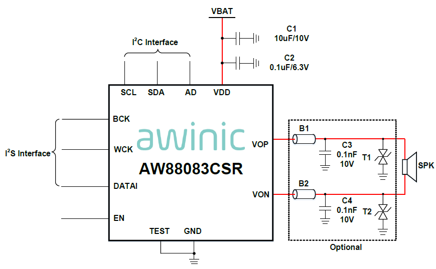 图 | AW88083CSR典型应用框图,来源:艾为官网