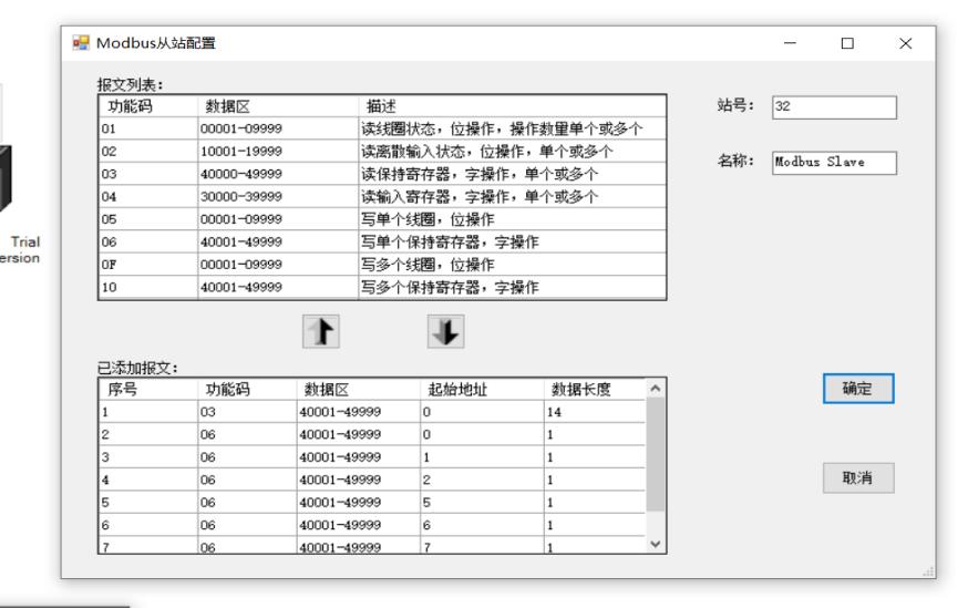 双击“Modbus Slave”配置要读写的寄存器,本文中要读取的流量计的以下数据: