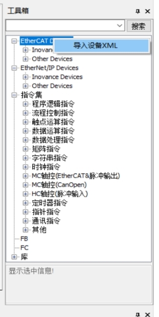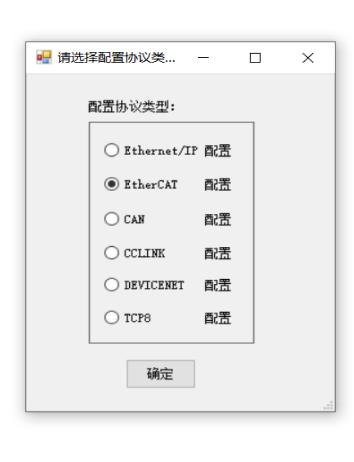 在协议选择框中选择“EtherCAT配置”,点击确认按钮。