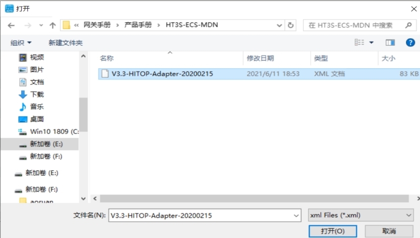 选择HT3S-ECS-MDN的XML文件, 导入成功后重启。