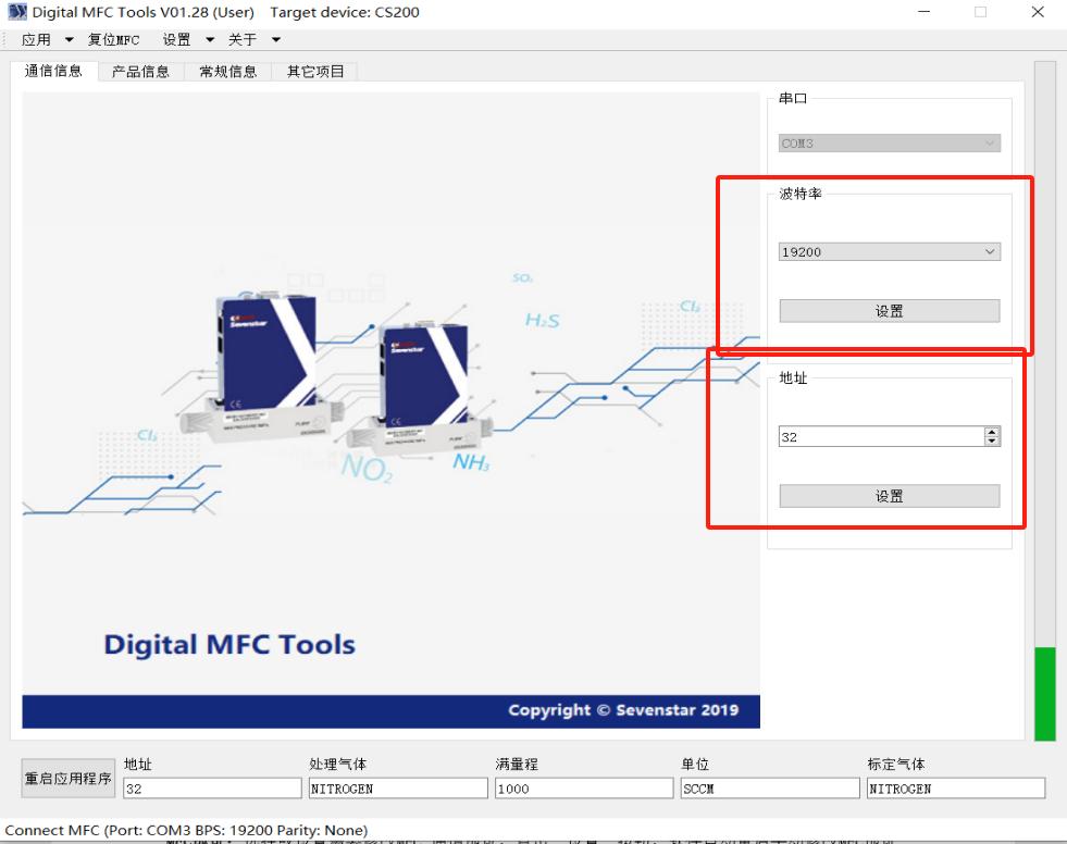 通过七星华创CS310流量计软件Digital ?MFC ?Tools读取通讯参数。