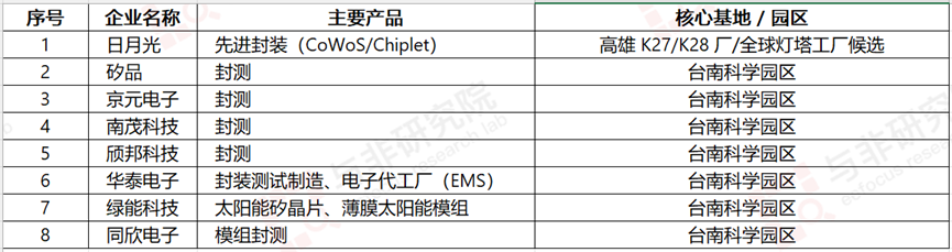 矽品精密(SPIL)投资 975 亿新台币建设先进封测厂,2025 年 Q4 动工,预计 2027 年量产。环球晶圆(GlobalWafers)12 英寸硅晶圆厂扩产,月产能增至 25 万片,入驻厂商增至 45 家。