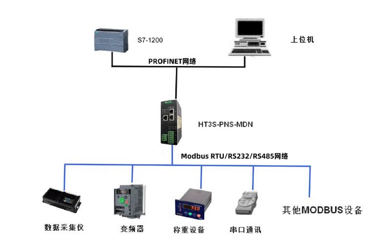 解决的问题:西门子 1200如何通过HT3S-PNS-MDN网关采集七星华创CS310流量计数据到上位机Profinet网络平台。