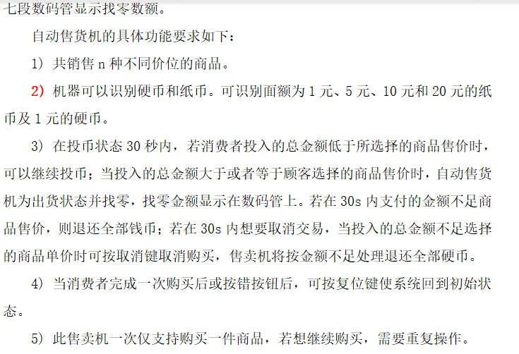 购买成功后用led指示,同时数码管显示投入总钱币,找零金额,选中商品价钱。具体信号对应具体功能如下图所示。