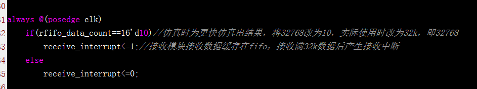 ????????receive_interrupt<=1;//接收模块接收数据缓存在fifo,接收满32k数据后产生接收中断