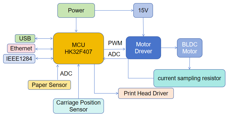 在数字化与智能化浪潮下,打印机作为工业自动化与办公场景的核心设备,其市场需求持续攀升。据行业数据显示,全球工业打印机市场规模预计2025年将突破980亿美元,年复合增长率达7.5%,尤其在智能制造、物流标签、医疗票据等场景中,对高精度、高稳定性的打印控制方案需求迫切。航顺芯片凭借自主研发的HK32F407系列MCU,为打印机行业提供了一站式高性能解决方案,助力客户实现从“能用”到“好用”的跨越式升级。