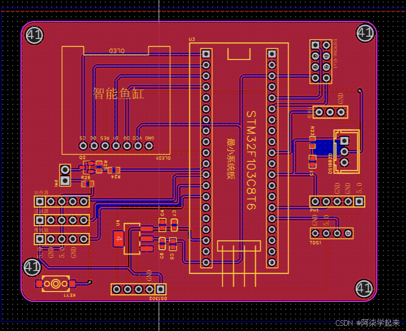 智能鱼缸监控系统基于STM32开发,通过WiFi(热点NET/12345678)连接云平台,集成温湿度、PH值、浑浊度等传感器,实时监测水质。硬件端采用OLED显示屏显示状态,支持舵机投喂、继电器控制增氧/加热/过滤设备;配套Android APP通过MQTT协议实现远程控制、数据可视化和定时投喂设置。系统包含完整的PCB设计、程序架构及演示视频资源,适用于智能家居场景。技术支持需联系开发者,相关代码和资料可通过网盘获取(提取码XZY0)。