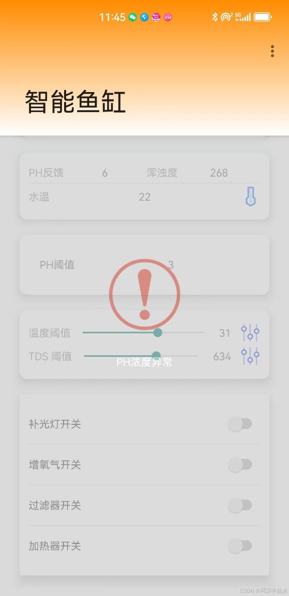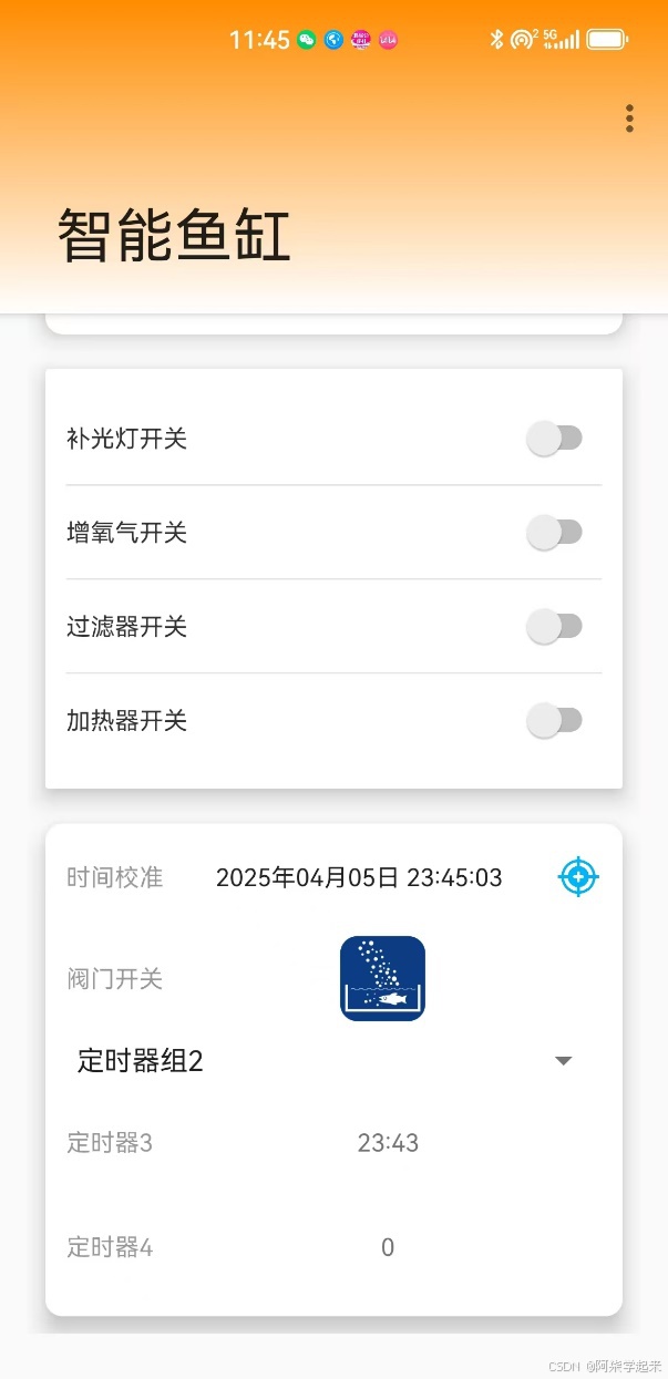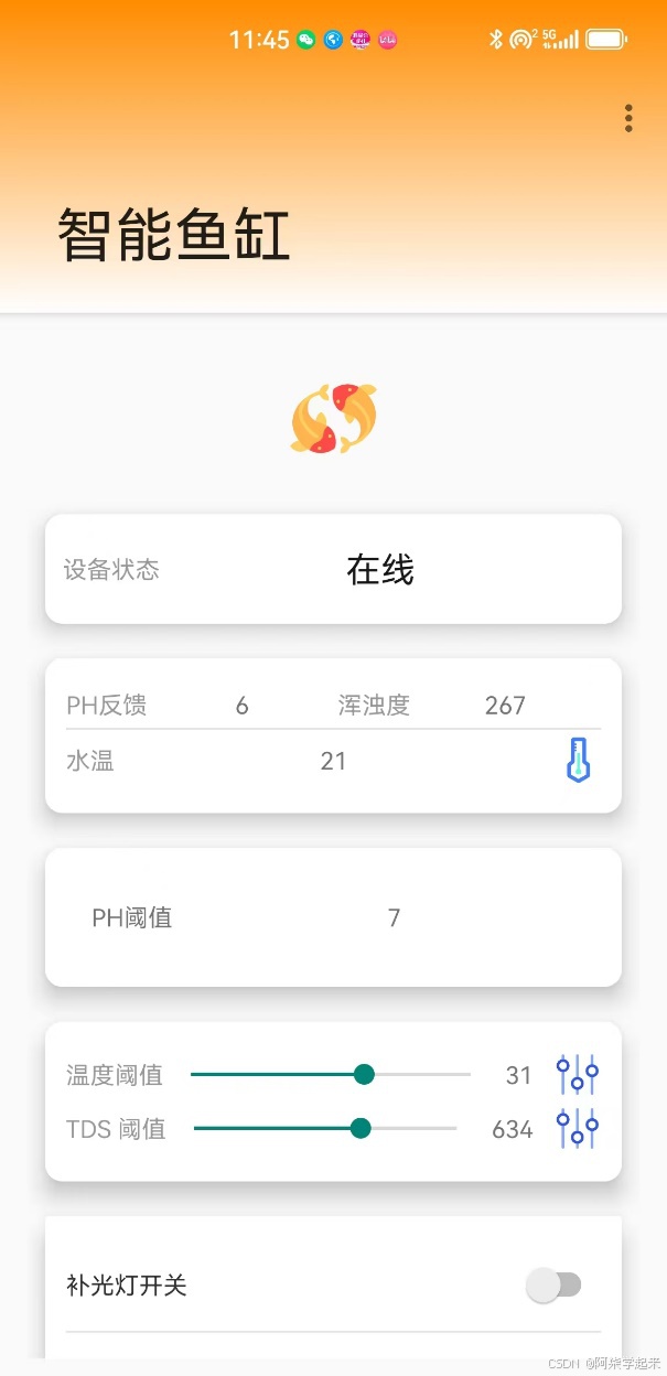 - LED补光灯:用于给鱼缸照亮,可以远程开启和关闭