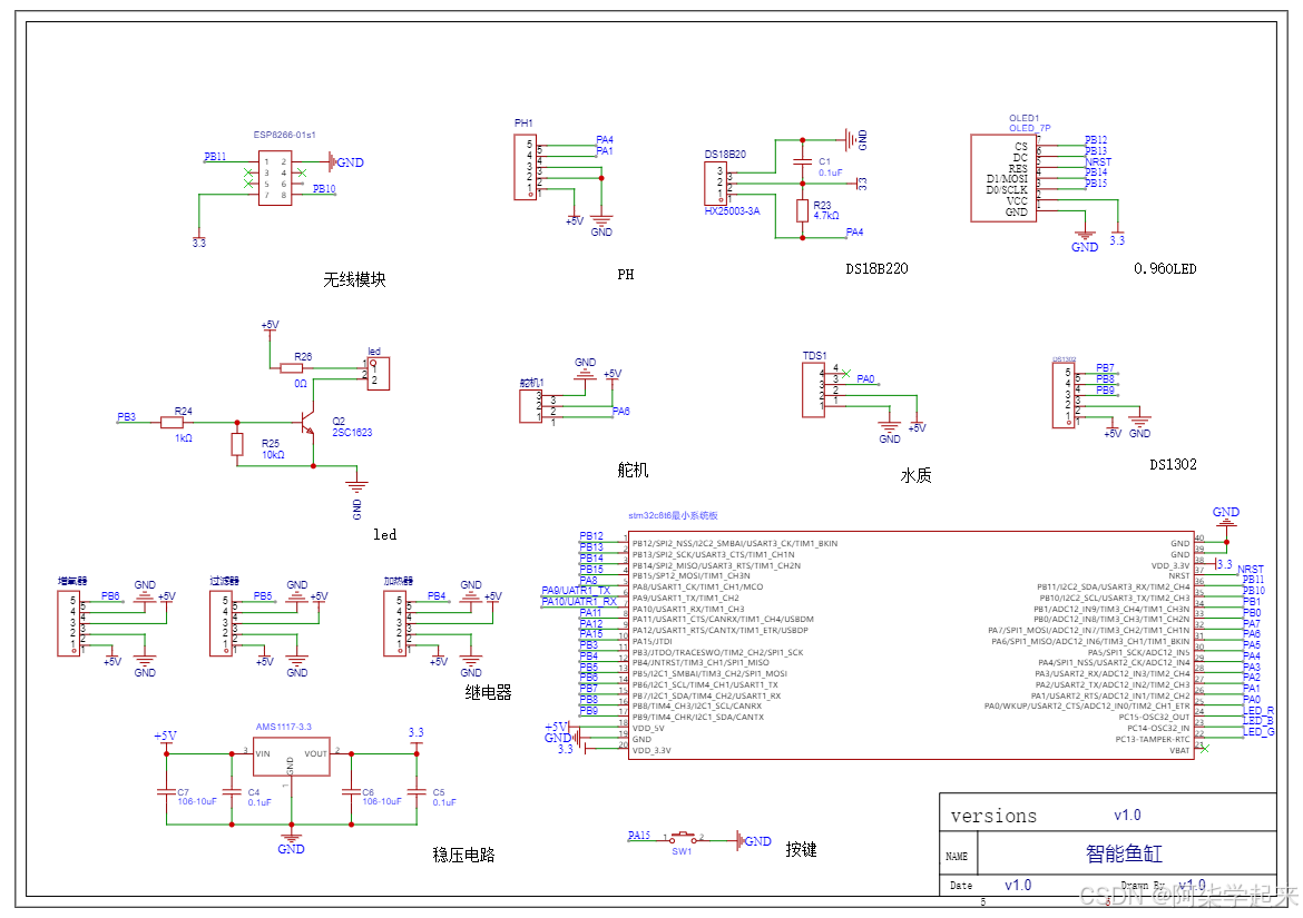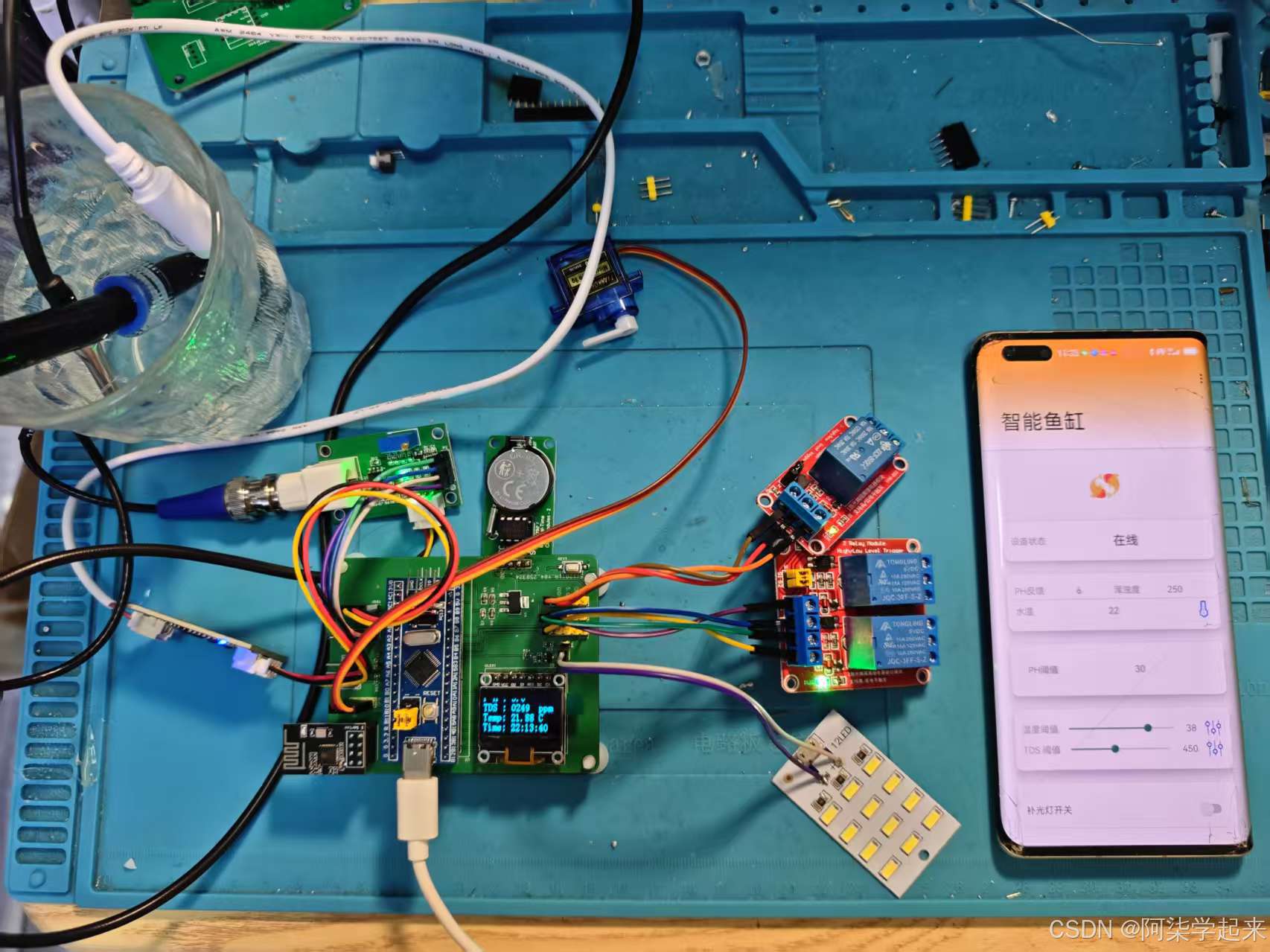 - 继电器:模拟增氧器的控制,可以远程开启和关闭