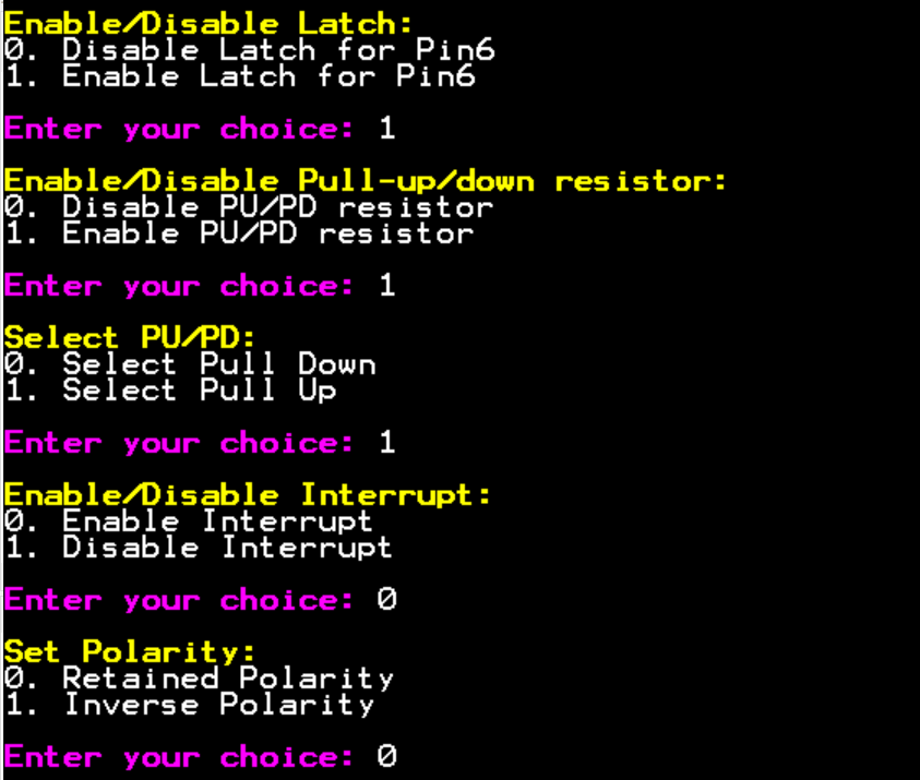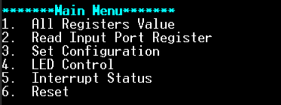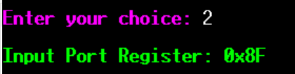- 当按下主菜单中的#1(所有寄存器值)读取输入端口寄存器时,生成的中断会被清除。