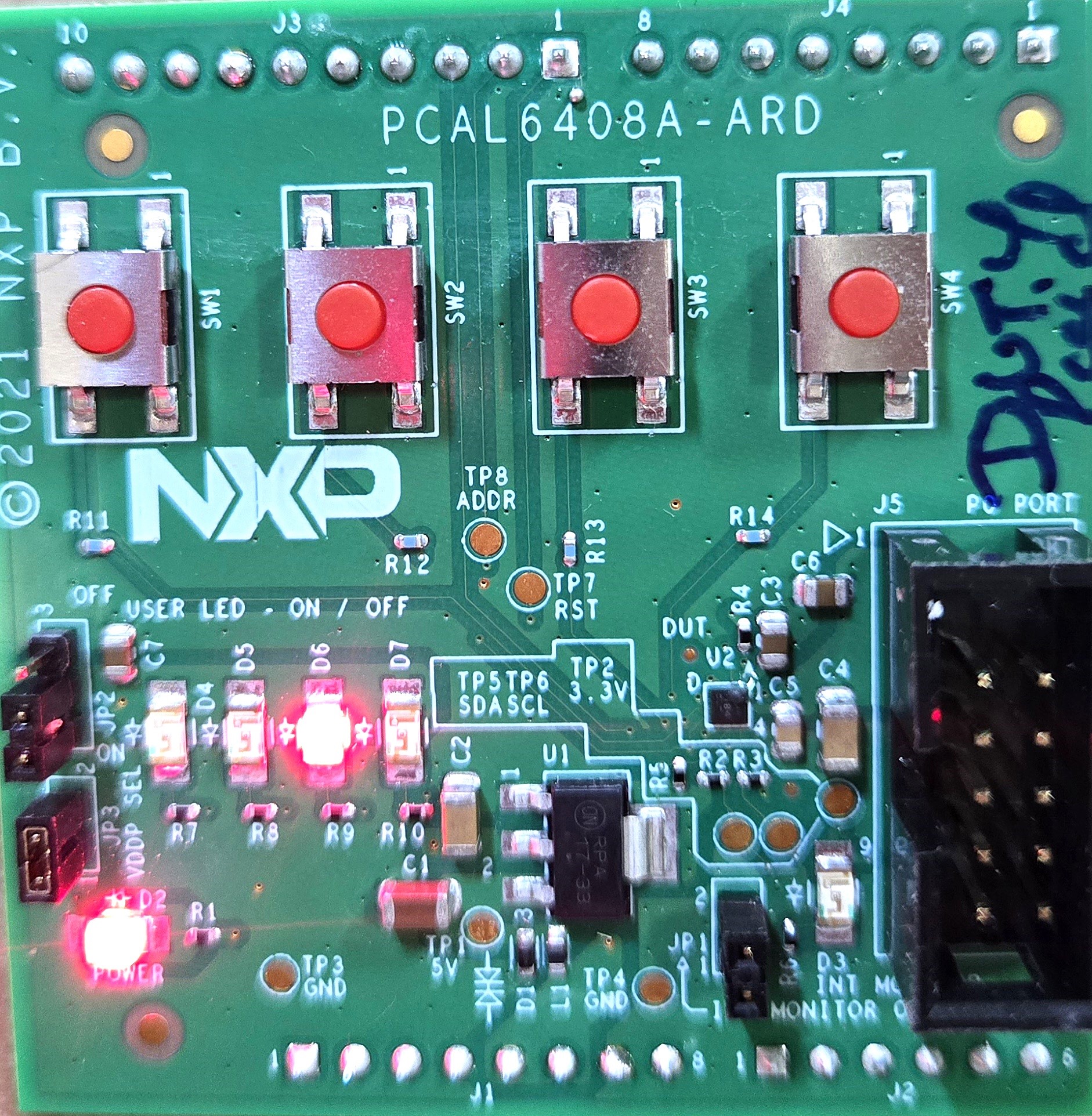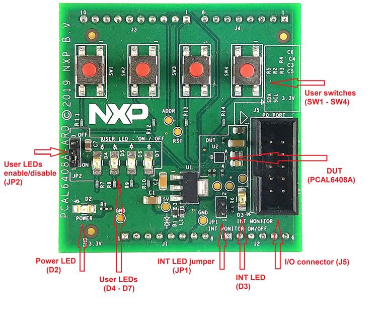 - 应放置JP1跳线以启用 PCAL6408A 扩展板上的中断 LED。