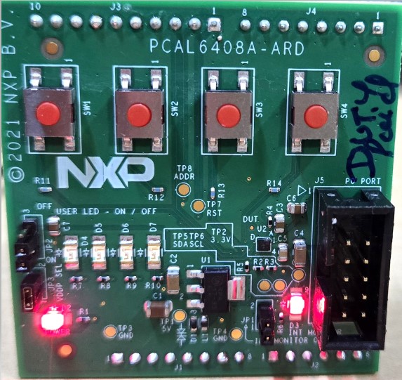 - 确保JP2跳线位于1-2位置,以启用 PCAL6408A 扩展板上的 USER LED。