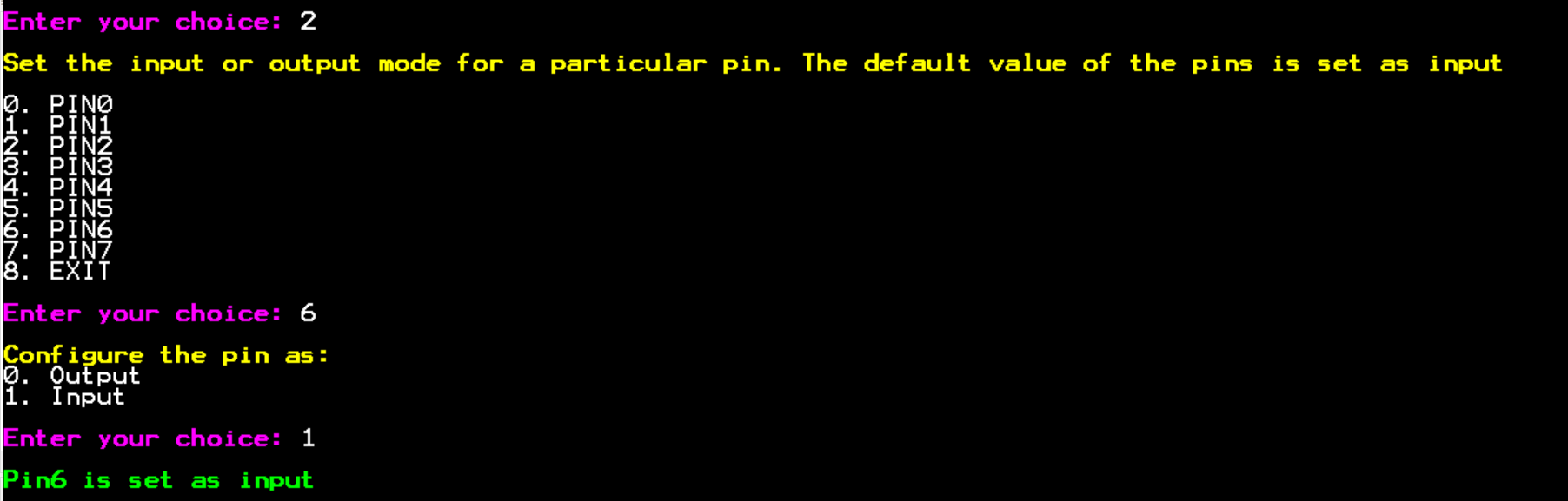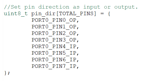 - 建议使用引脚 0-3 作为输出,因为它连接到 LED;使用引脚 4-7 作为输入,因为它连接到开关。