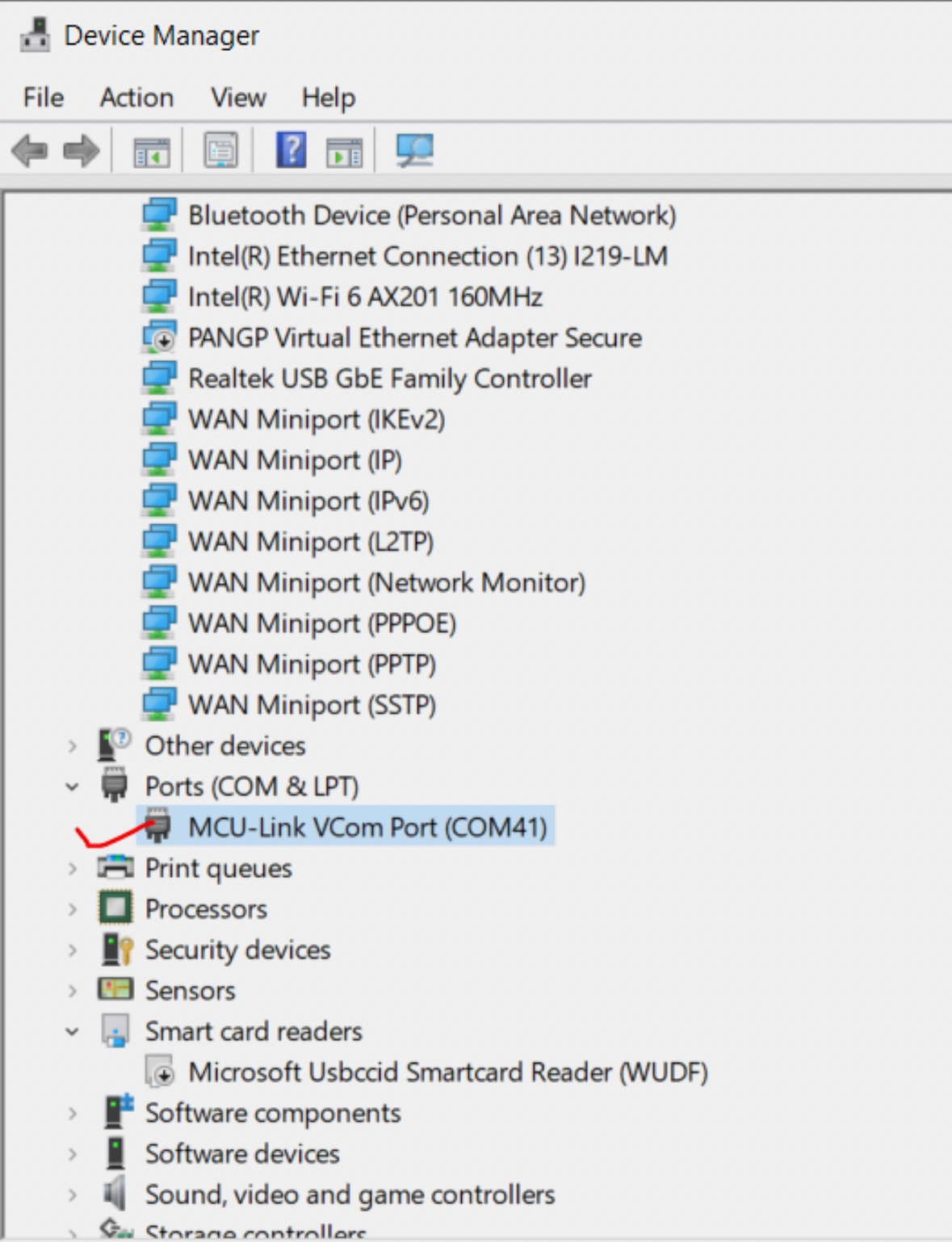- 用户需要通过设备管理器连接主机 PC 和目标板之间的 USB 电缆后检查 COM 端口。