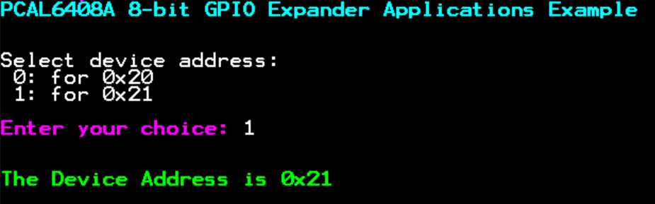 - 应用程序首先允许用户选择 0x20 和 0x21 之间的从属地址。
