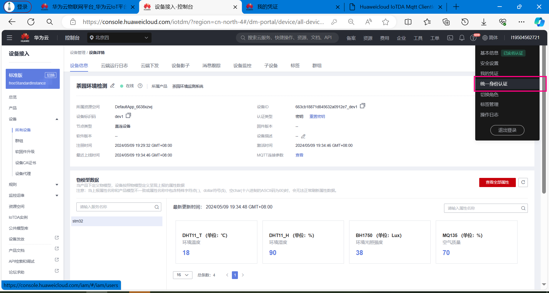 • 华为云IoT平台作为MQTT Broker,负责设备与应用的通信中转
