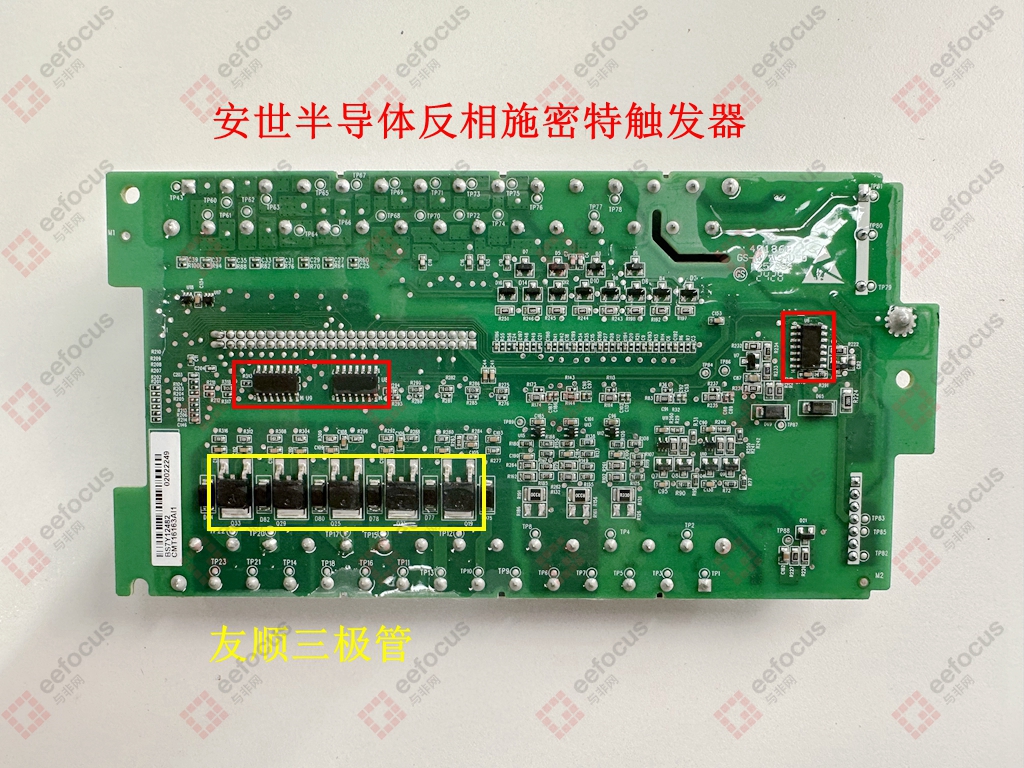 I/O接口板背面依旧包含友顺三极管(HJ44H11L)以及安世半导体六路反相施密特触发器(74HC14D)。