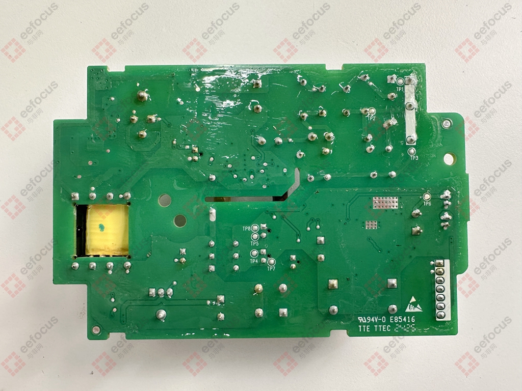 大家对电源板应该会更加熟悉,从变压器中间出来的白色丝印线将电源板分为一次侧和二次侧: